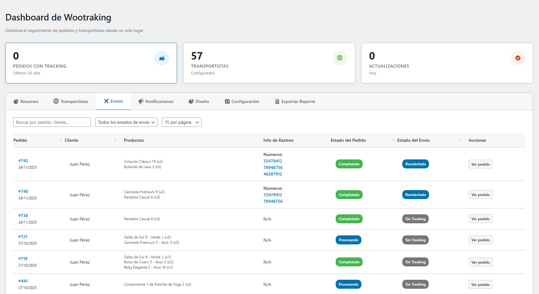 Ahorra tiempo administrativo. Pegas el número de rastreo y el plugin detecta el patrón al instante.